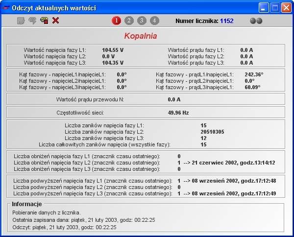 Wygląd panelu dla odczytu wybranych rejestrów licznika.