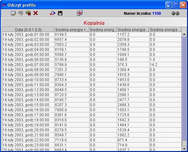Przykładowy odczyt profilu danych z licznika.