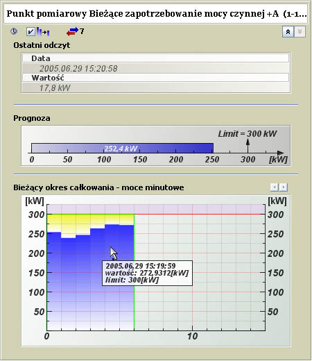 Przykładowy punkt pomiarowy bieżącego zapotrzebowania mocy czynnej +A - moce minutowe.
